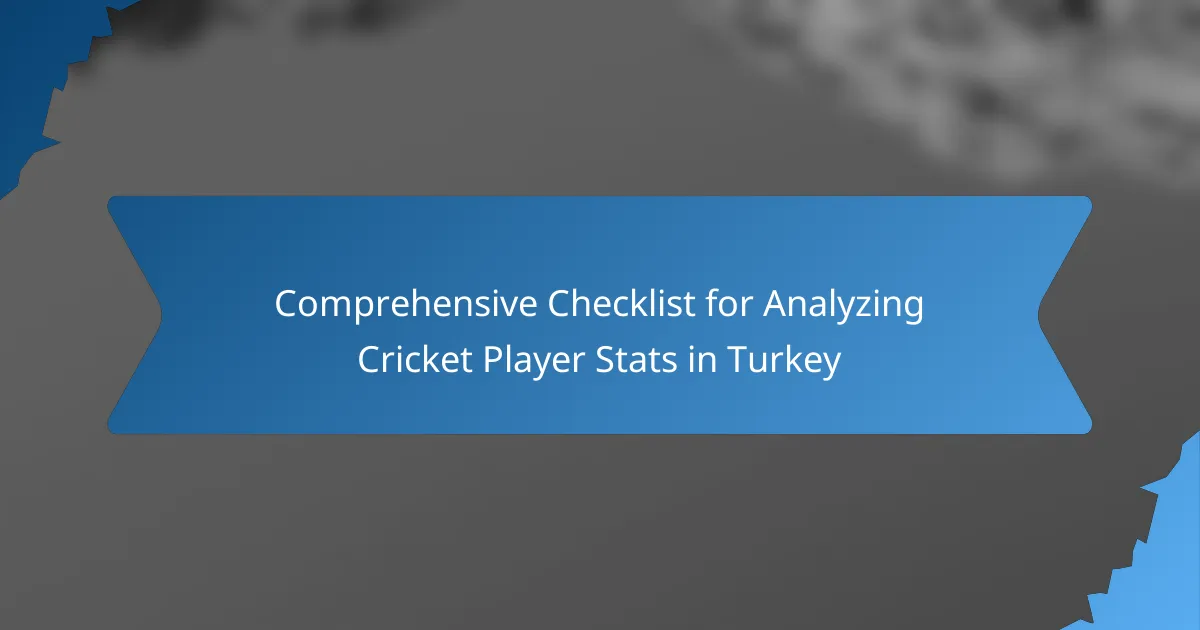 Analyzing cricket player stats in Turkey requires a comprehensive approach that focuses on key metrics such as batting average, bowling economy rate, and strike rate. By evaluating these statistics alongside player rankings and injury history, teams can gain valuable insights into performance trends and make informed decisions. Utilizing specialized tools and platforms enhances the analysis, allowing for a deeper understanding of player capabilities over time.